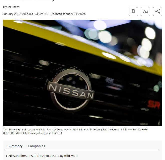 Nissan Motor said it would sell its manufacturing assets in Rosslyn, South Africa, to the local arm of China’s Chery Automobile, for an undisclosed sum.